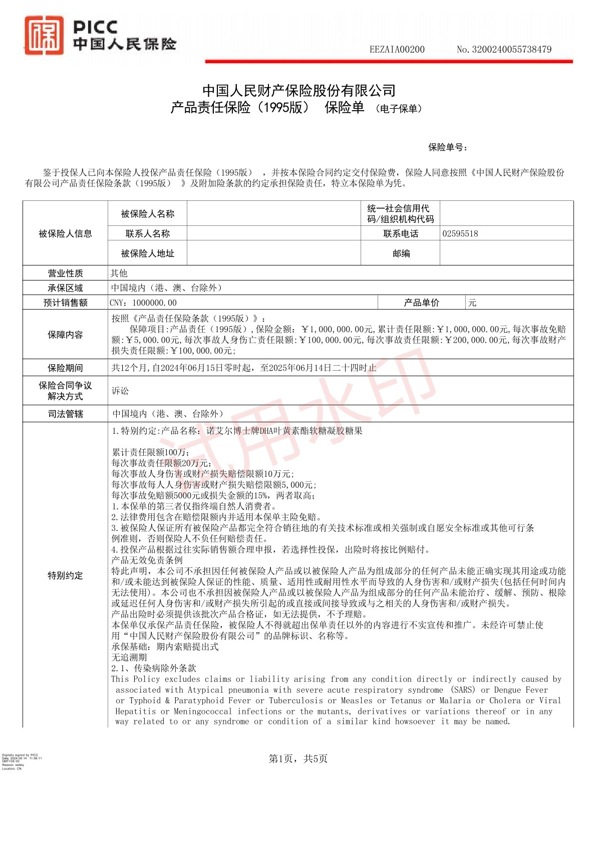☛提供营业执照,投保的产品资料;