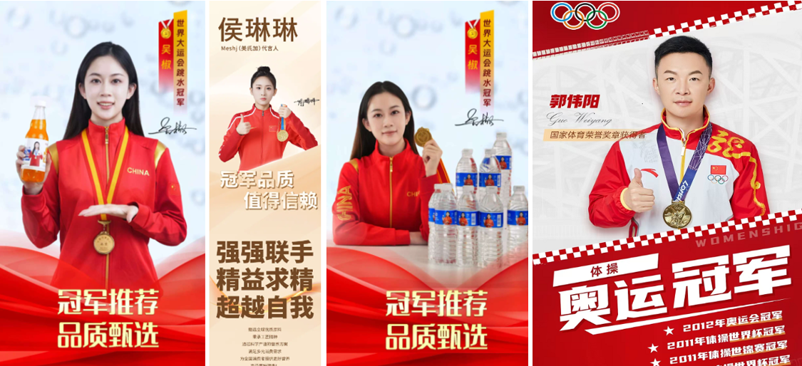 3、邀请全国体育冠军为企业及产品代言,将体育冠军所代表的社会认可度、健康积极的形象与产品深度绑定,提振经销商信心,提升品牌层次。
