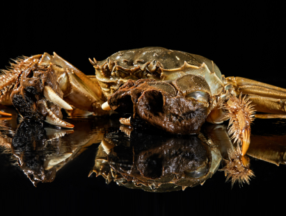 阳澄湖大闸蟹的特点是,青壳,白肚,金爪,黄毛