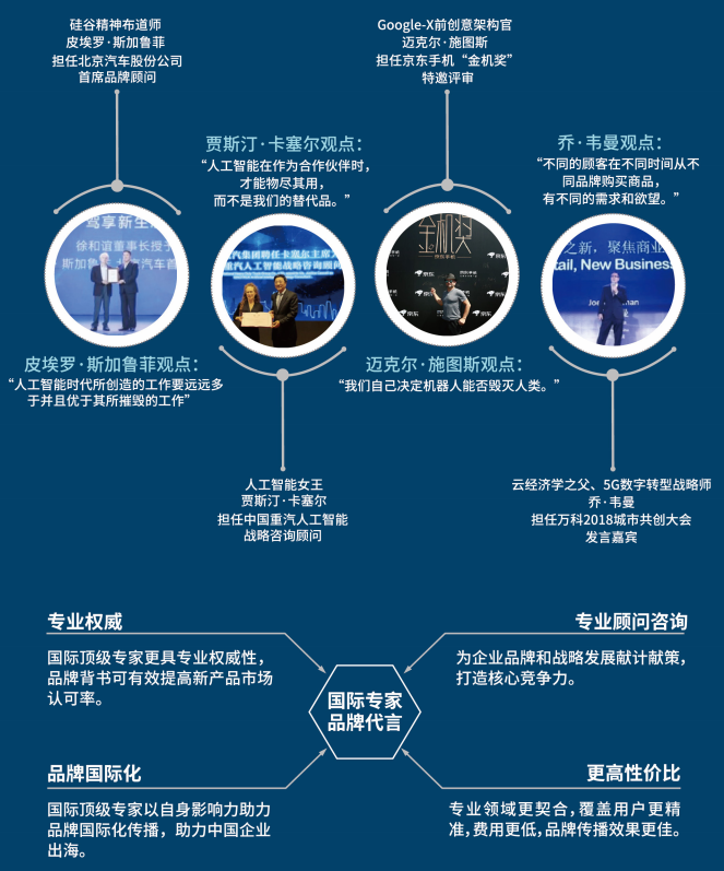 为企业地区在品牌,产品,技术等方面提供诺贝尔奖和院士等顶级专家合作模式,包括首席科学家邀请视频背书文章观点输出等。