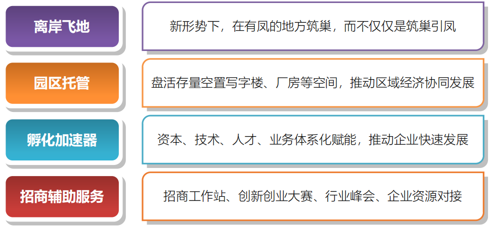 为帮助地方政府或产业园有针对性地搜寻和筛选优秀标的企业和科技成果,有效增加符合性项目来源和活动效果, 根据政府或产业园要求,组织有意向落地企业或人才项目主要负责人到访地方政府或园区,就落地当地发展 相关事宜进行小范围针对性面对面洽商,通过这种到访筛选机制,达到避免无效沟通、降低时间和经济成本、增强沟通效果的目的。 已为江西共青城市、湖口县、九江市科技城、河北昌黎、四川达州、河南三门峡、江苏连云港、苏州、浙江宁波等 60多个城市或产业园提供企业到访投资考察行对接活动。每次到访企业平均落地率不低于20%。与江苏连云港、苏 州等地形成长效合作机制。